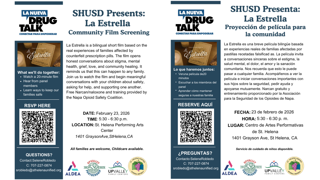 La Estrella is a bilingual short film based on the real experiences of families affected by counterfeit prescription pills. The film opens honest conversations about stigma, mental health, grief, love, and community healing. It reminds us that this can happen to any family. Join us to watch the film and begin meaningful conversations with your children about safety, asking for help, and supporting one another.